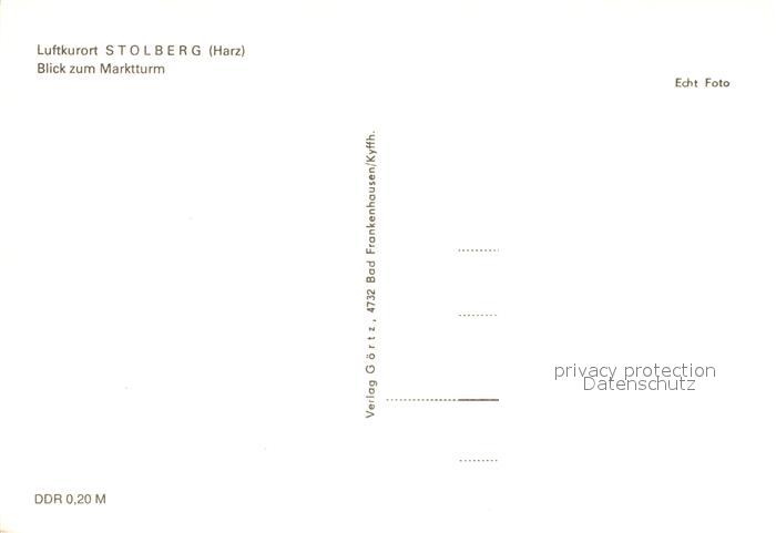 73104038 Stolberg Harz Marktturm postalisch nicht gelaufen Erhaltung siehe scans [KathaD81] KatCode: 11110015087410