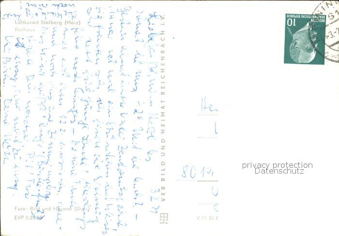 72394148 alte Postkarte Stolberg Harz Rathaus postalisch gelaufen Erhaltung siehe scans KatCode: 11110015087410