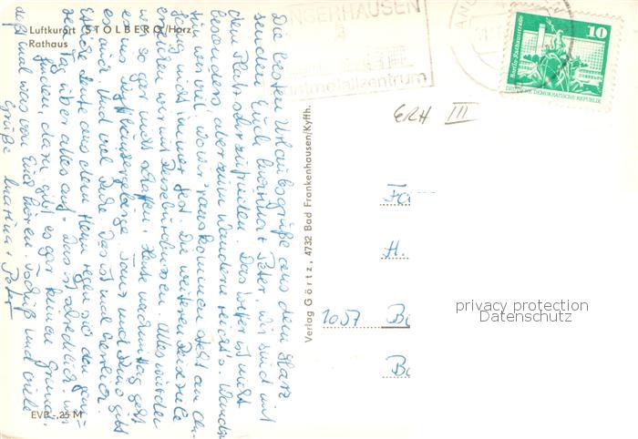 73782787 alte Postkarte Stolberg Harz Rathaus postalisch gelaufen Erhaltung siehe scans [WerneD78] KatCode: 11110015087410