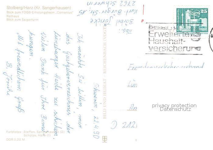 73076060 alte Postkarte Stolberg Harz Rathaus Erholungsheim Saigerturm postalisch gelaufen Erhaltung siehe scans [KathaD81] KatCode: 11110015087410