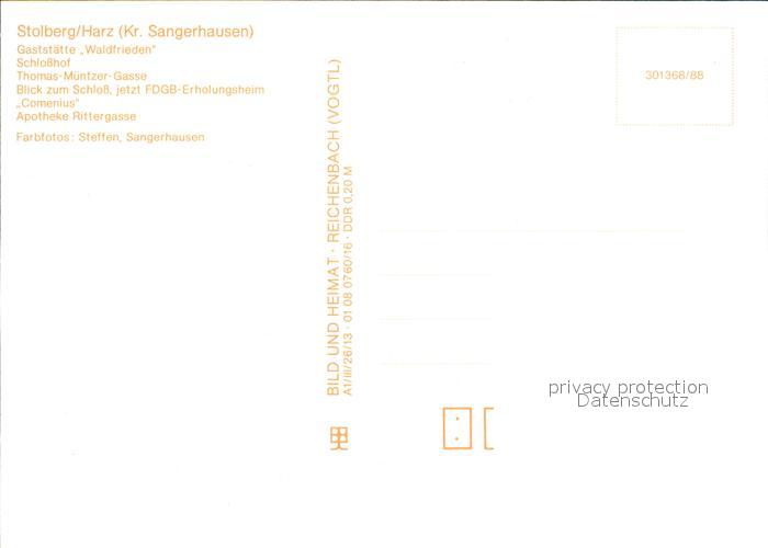 72548599 Stolberg Harz Restaurant Waldfrieden Schlosshof Thomas-Muentzer-Gasse Rittergasse postalisch nicht gelaufen Erhaltung siehe scans [LiesaD40 kv019box] KatCode: 11110015087410