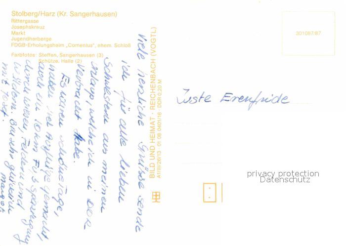 72869637 Stolberg Harz Rittergasse Josephskreuz Markt Jugendherberge postalisch nicht gelaufen Erhaltung siehe scans [LiesaD40] KatCode: 11110015087410