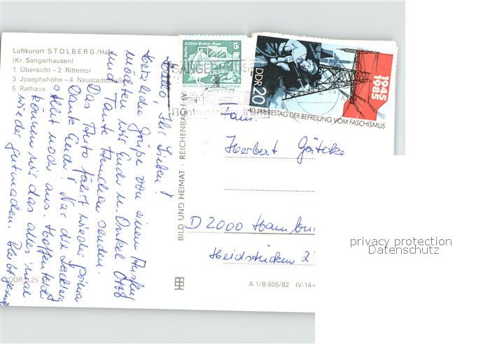71900372 alte Postkarte Stolberg Harz Rittertor Josephshoehe Rathaus postalisch gelaufen Erhaltung siehe scans KatCode: 11110015087410