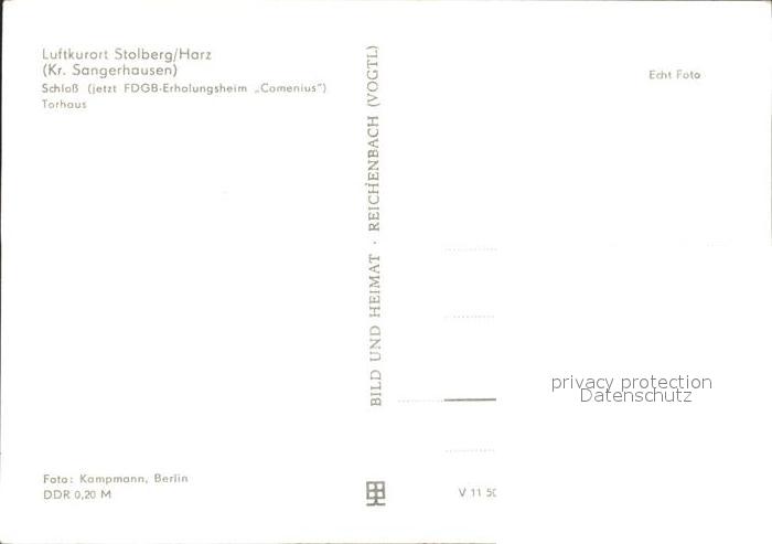 72232763 Stolberg Harz Schloss jetzt FDGB Erholungsheim Camenius Torhaus Luftkurort postalisch nicht gelaufen Erhaltung siehe scans KatCode: 11110015087410