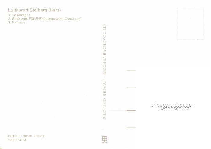 72654394 Stolberg Harz Teilansicht FDGB Erholungsheim Comenius Rathaus postalisch nicht gelaufen Erhaltung siehe scans [WerneD78] KatCode: 11110015087410