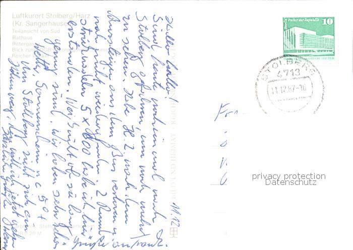 72356001 alte Postkarte Stolberg Harz Teilansicht Rathaus Rittergasse FDGB Erholungsheim Fachwerkhaus Reicher Winkel Schloss postalisch gelaufen Erhaltung siehe scans KatCode: 11110015087410