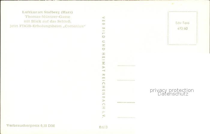 71894012 Stolberg Harz Thomas-Muentzer-Gasse Schloss Erholungsheim Comenius postalisch nicht gelaufen Erhaltung siehe scans KatCode: 11110015087410