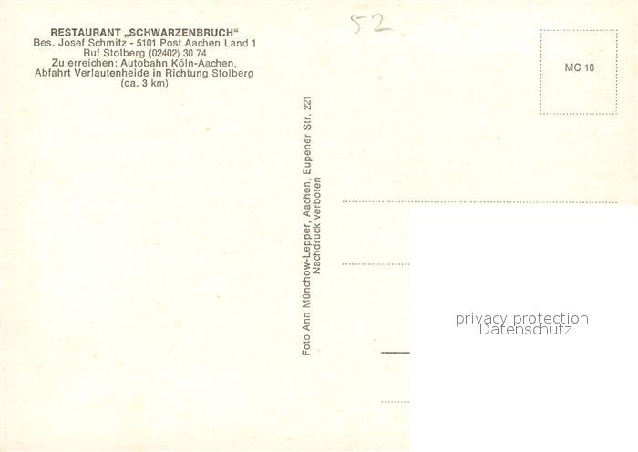 73570155 Stolberg Rheinland Restaurant Schwarzenbruch postalisch nicht gelaufen Erhaltung siehe scans [FriedD77] KatCode: 11110005354032