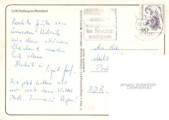 73670484 alte Postkarte Stolberg Rheinland Statue Skulptur Burg Marktbrunnen Motive Innenstadt postalisch gelaufen Erhaltung siehe scans [FriedD77] KatCode: 11110005354032
