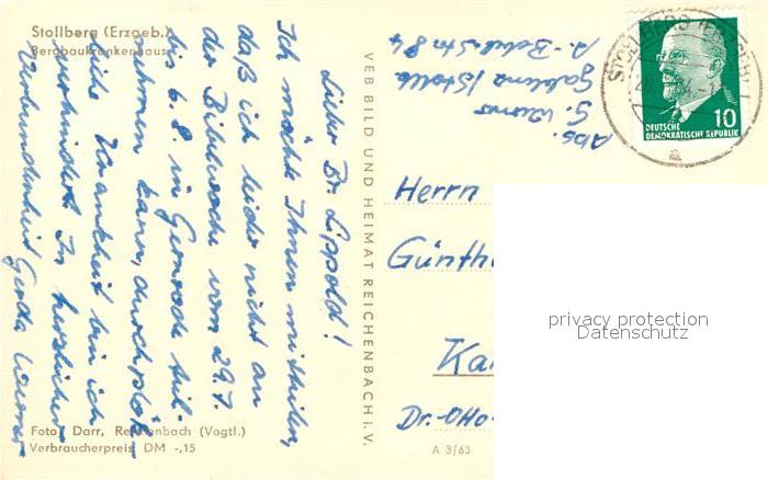72962082 alte Postkarte Stollberg Erzgebirge Bergbaukrankenhaus postalisch gelaufen Erhaltung siehe scans [LiesaD40] KatCode: 11110014188230