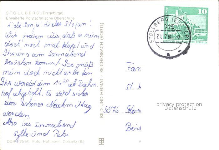 72064786 alte Postkarte Stollberg Erzgebirge Erweiterte Poytechnische Oberschule postalisch gelaufen Erhaltung siehe scans KatCode: 11110014188230
