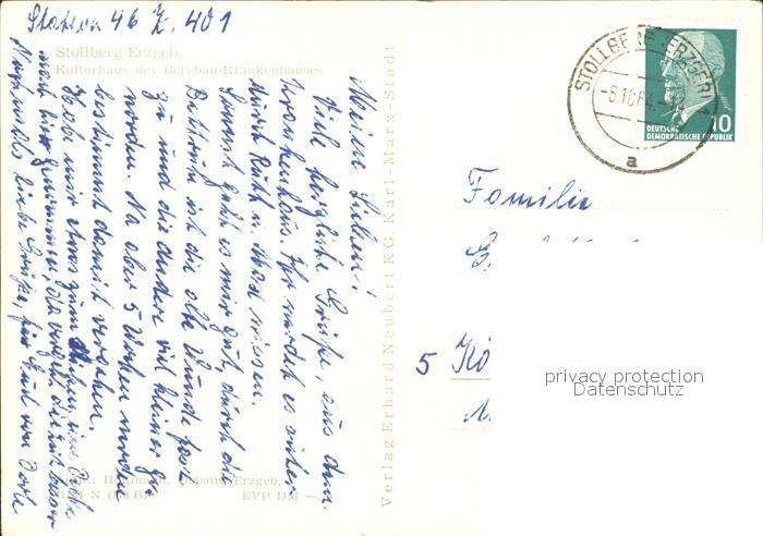 72075024 alte Postkarte Stollberg Erzgebirge Kulturhaus des Bergbaukrankenhauses postalisch gelaufen Erhaltung siehe scans KatCode: 11110014188230