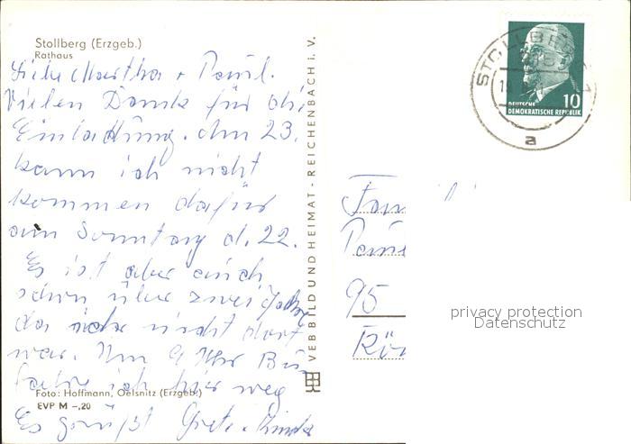 71998495 alte Postkarte Stollberg Erzgebirge Rathaus postalisch gelaufen Erhaltung siehe scans KatCode: 11110014188230