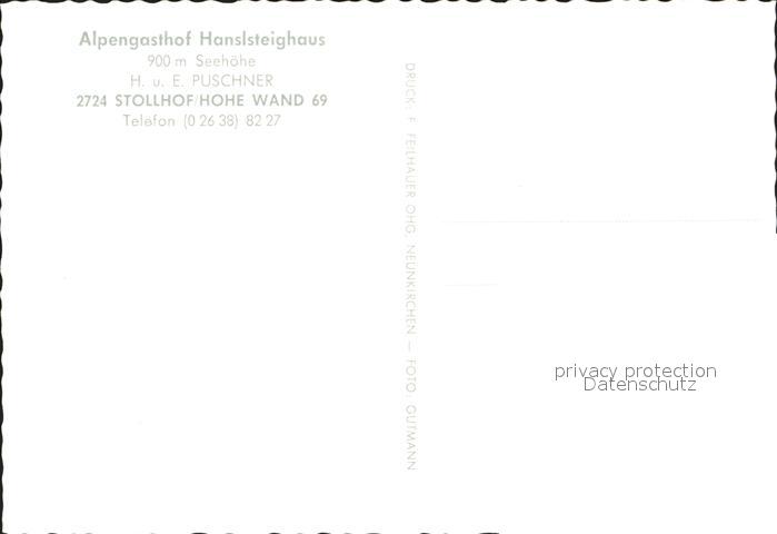 72246236 Stollhof Hohe Wand Alpengasthof Hanslsteighaus postalisch nicht gelaufen Erhaltung siehe scans KatCode: 11390