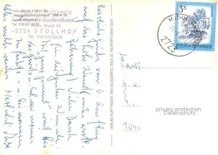73650281 alte Postkarte Stollhof Hohe Wand Herrgottschnitzerhaus postalisch gelaufen Erhaltung siehe scans [WerneD78] KatCode: 11390