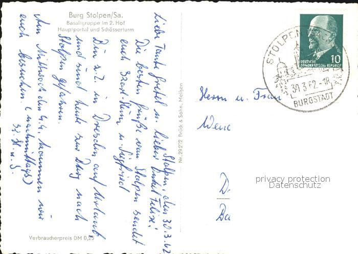 72474043 alte Postkarte Stolpen Burg Basaltgruppe im 2. Hof Hauptportal Schoesserturm postalisch gelaufen Erhaltung siehe scans KatCode: 11110014287390