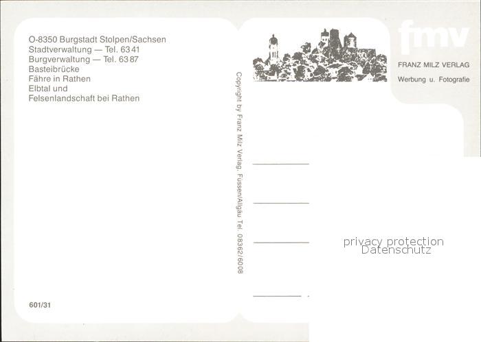 72356008 Stolpen Burgstadt Basteibruecke Faehre Rathen Elbtal Felsenlandschaft Elbsandsteingebirge postalisch nicht gelaufen Erhaltung siehe scans KatCode: 11110014287390