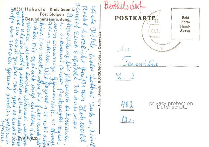 72927403 alte Postkarte Stolpen Hohwald Gesundheitseinrichtung postalisch gelaufen Erhaltung siehe scans [LiesaD40] KatCode: 11110014287390