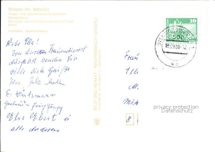 72324606 alte Postkarte Stolpen Klengelsburg Seiger- und Johannisturm Schloesserturm postalisch gelaufen Erhaltung siehe scans KatCode: 11110014287390