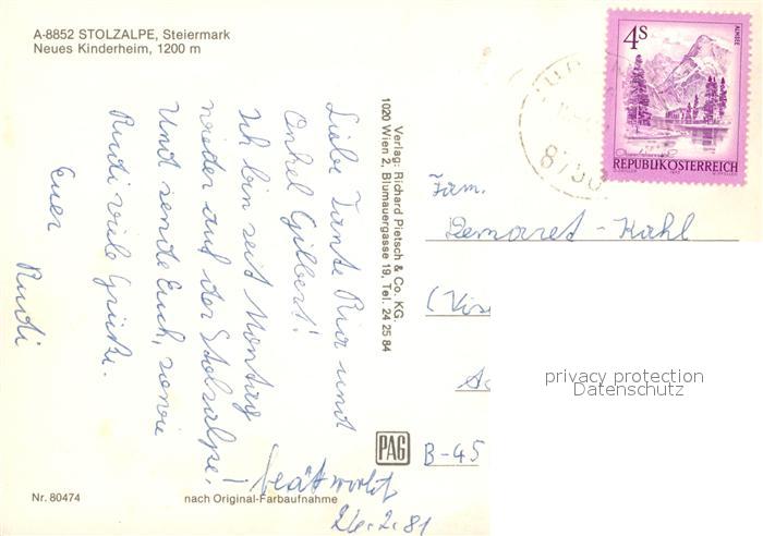 73034292 alte Postkarte Stolzalpe Neues Kinderheim postalisch gelaufen Erhaltung siehe scans [PaolaD17] KatCode: 11390226061431