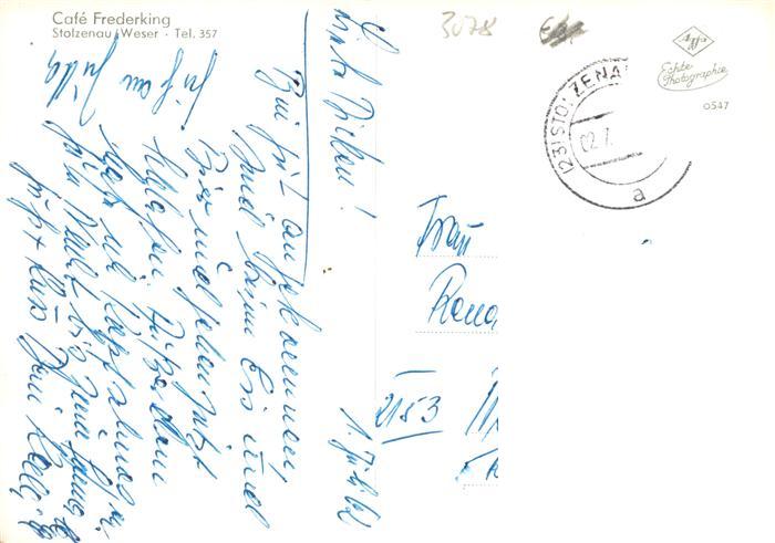 73909260 alte Postkarte Stolzenau Weser Cafe Frederking Garten Gastraeume Bar Konditorei postalisch gelaufen Erhaltung siehe scans [FriedD77] KatCode: 11110003256032