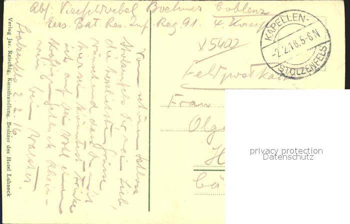 72278048 alte Postkarte Stolzenfels postalisch gelaufen Erhaltung siehe scans KatCode: 11110007111000