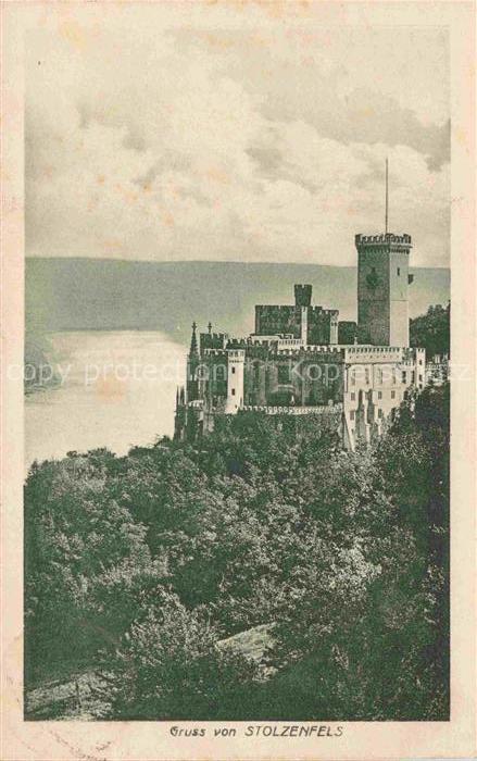 74149546 alte Postkarte Stolzenfels (Schloss) Koblenz Rhein Rheinland-Pfalz Blick zum Schloss postalisch gelaufen Erhaltung siehe scans [FriedD77] KatCode: 11110007111000