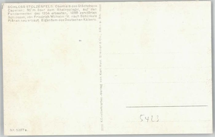 40263991 Stolzenfels Schloss Künstlerkarte KatCode 11110007111000