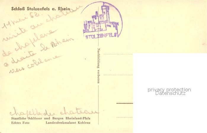 73555572 Stolzenfels Schloss Stolzenfels postalisch nicht gelaufen Erhaltung siehe scans [PaolaD17] KatCode: 11110007111000
