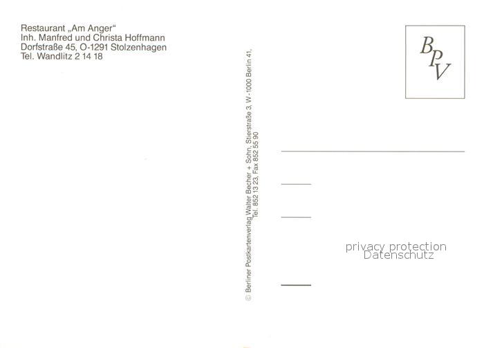 73085304 Stolzenhagen Wandlitz Restaurant Am Anger Theke Gastraeume postalisch nicht gelaufen Erhaltung siehe scans [FriedD77] KatCode: 11110012060269
