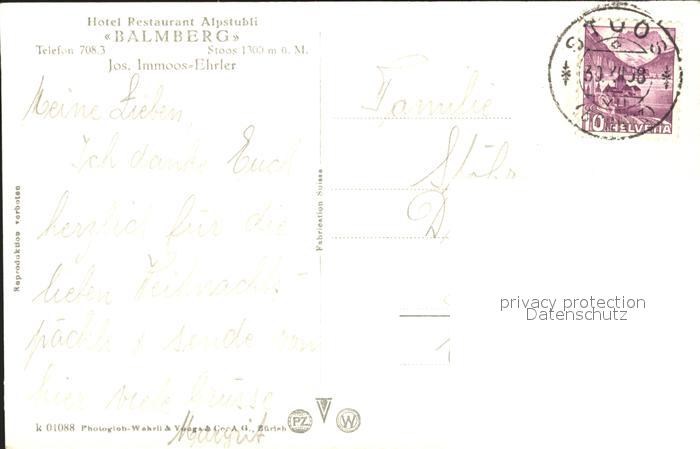 11673839 alte Postkarte Stoos SZ Hotel Alpstubli Balmberg postalisch gelaufen Erhaltung siehe scans KatCode: 11470170500504