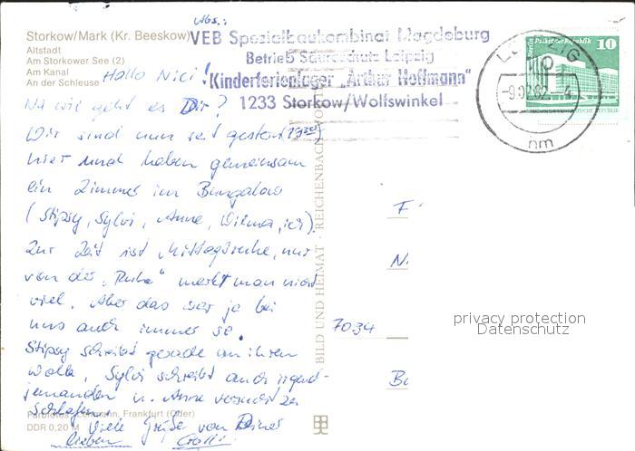 72337111 alte Postkarte Storkow Mark Altstadt Storkower See Kanal Schleuse postalisch gelaufen Erhaltung siehe scans KatCode: 11110012067481