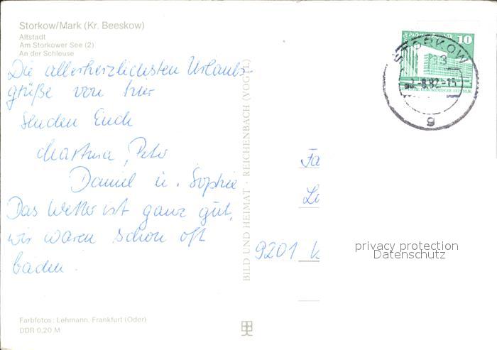 72157644 alte Postkarte Storkow Mark Altstadt Storkower See Schleuse Segeln postalisch gelaufen Erhaltung siehe scans KatCode: 11110012067481