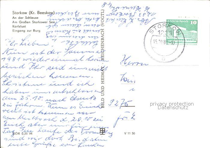72331460 alte Postkarte Storkow Mark Schleuse See Kalrlust postalisch gelaufen Erhaltung siehe scans KatCode: 11110012067481