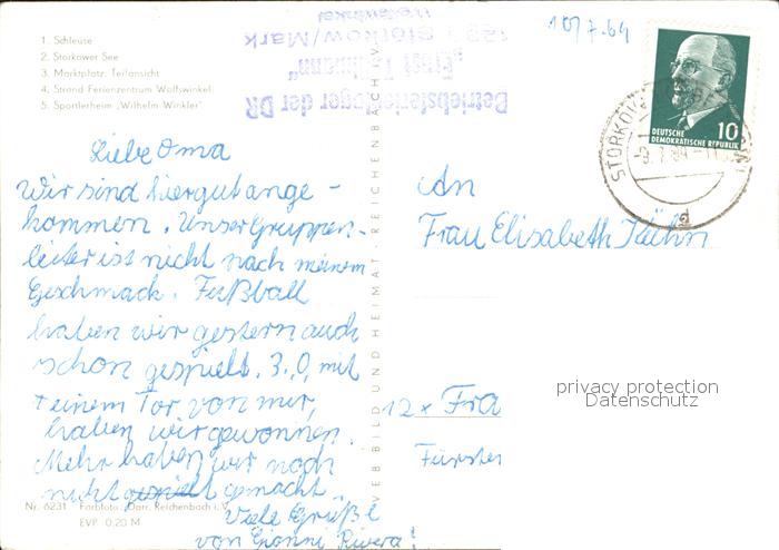 72023487 alte Postkarte Storkow Mark Schleuse Storkower See Marktplatz postalisch gelaufen Erhaltung siehe scans KatCode: 11110012067481