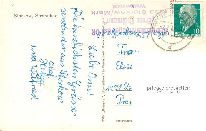 73776533 alte Postkarte Storkow Mark Strandbad postalisch gelaufen Erhaltung siehe scans [FriedD77] KatCode: 11110012067481