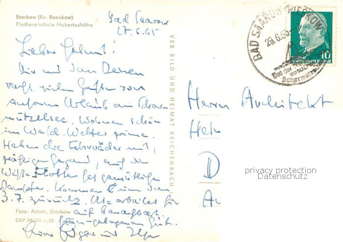 73751072 alte Postkarte Storkow Penkun Fischereischule Hubertushoehe postalisch gelaufen Erhaltung siehe scans [WerneD78] KatCode: 11110013062044
