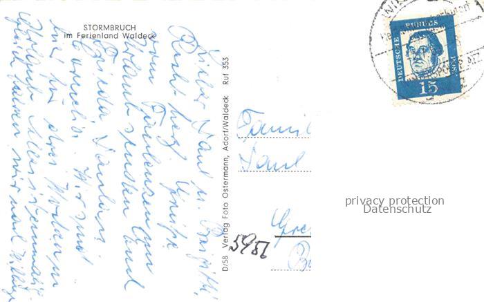 74023092 alte Postkarte Stormbruch Diemelsee Hessen Fliegeraufnahme postalisch gelaufen Erhaltung siehe scans [WerneD78] KatCode: 11110006635007