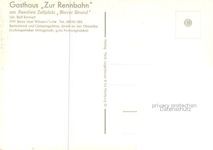 73724622 Stove Gasthaus Zur Rennbahn Campingplatz Stover Strand postalisch nicht gelaufen Erhaltung siehe scans [FriedD77] KatCode: 11110003353007