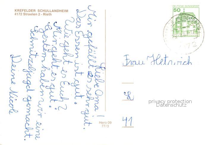 72961808 alte Postkarte Straelen Krefelder Schullandheim postalisch gelaufen Erhaltung siehe scans [NatalD47] KatCode: 11110005154052