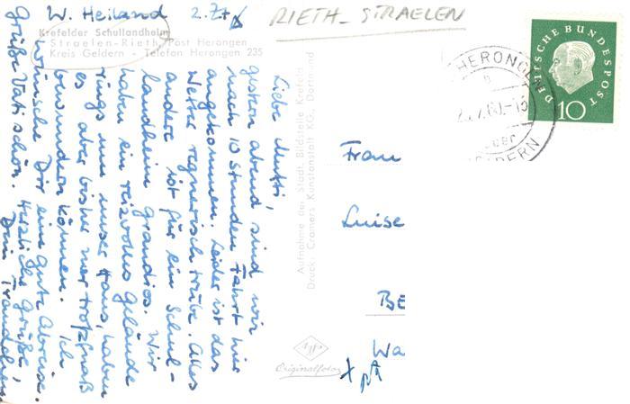 73878034 alte Postkarte Straelen Krefelder Schullandheim postalisch gelaufen Erhaltung siehe scans [FriedD77] KatCode: 11110005154052