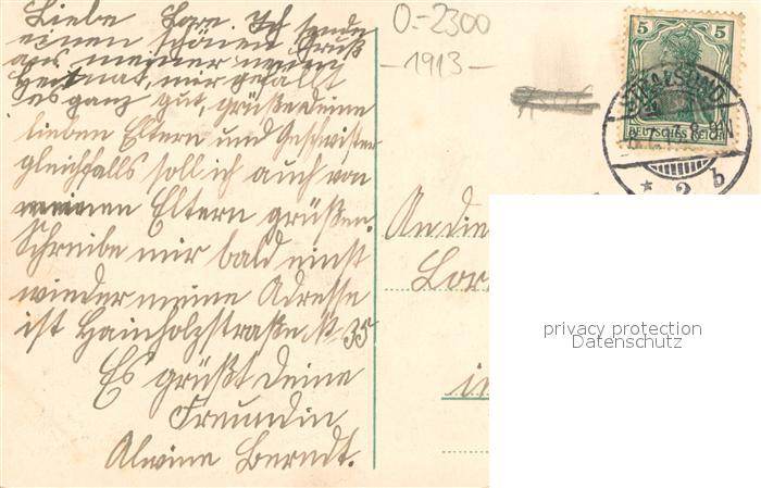 73696291 alte Postkarte Stralsund Blick vom Knieperteich mit Nikolaikirche postalisch gelaufen Erhaltung siehe scans [FriedD77] KatCode: 11110013005000