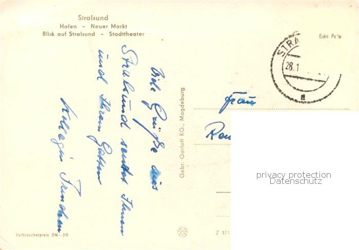 73863662 Stralsund Hafen Neuer Markt Blick auf Stralsund Stadttheater postalisch nicht gelaufen Erhaltung siehe scans [WerneD78] KatCode: 11110013005000