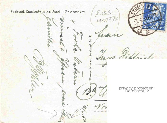 74099865 alte Postkarte STRALSUND Krankenhaus am Sund Fliegeraufnahme postalisch gelaufen Erhaltung siehe scans [WerneD78] KatCode: 11110013005000