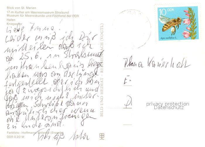 73047949 alte Postkarte Stralsund Mecklenburg Vorpommern Blick von St Marien Meeresmuseum Hafen Kniepertor postalisch gelaufen Erhaltung siehe scans [KathaD81] KatCode: 11110013005000
