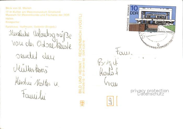 72383288 alte Postkarte Stralsund Mecklenburg Vorpommern Fliegeraufnahme Museum fuer Meereskunde Hafen Kniepertor postalisch gelaufen Erhaltung siehe scans KatCode: 11110013005000
