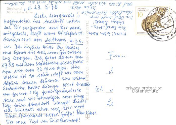 72467392 alte Postkarte Stralsund Mecklenburg Vorpommern Hafen postalisch gelaufen Erhaltung siehe scans KatCode: 11110013005000