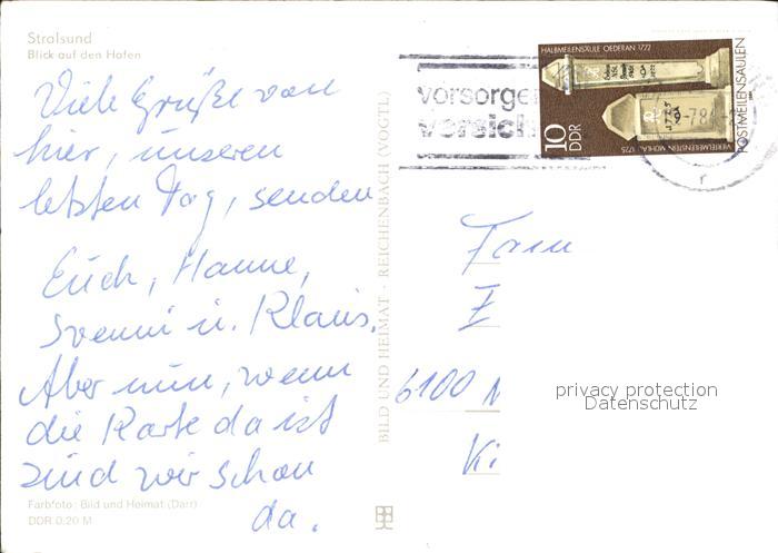 72266245 alte Postkarte Stralsund Mecklenburg Vorpommern Hafen postalisch gelaufen Erhaltung siehe scans KatCode: 11110013005000