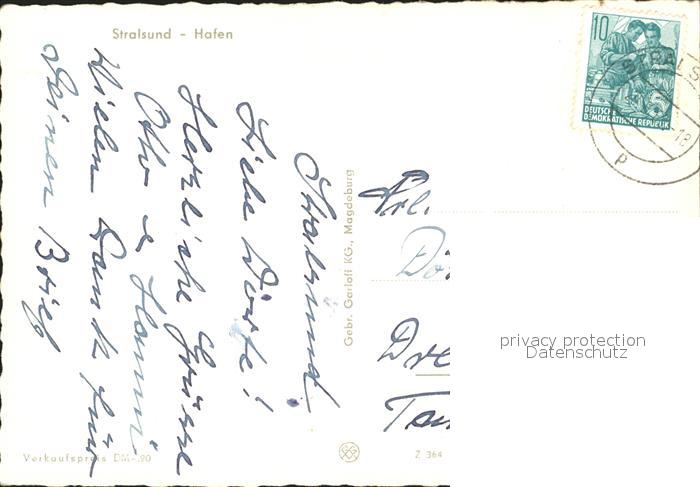 72134981 alte Postkarte Stralsund Mecklenburg Vorpommern Hafen postalisch gelaufen Erhaltung siehe scans KatCode: 11110013005000