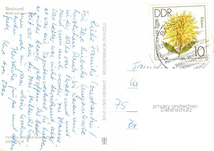 72854788 alte Postkarte Stralsund Mecklenburg Vorpommern Hafen postalisch gelaufen Erhaltung siehe scans [AndreD76] KatCode: 11110013005000